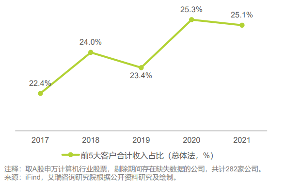 2017-2021年A股計(jì)算機(jī)企業(yè)前5大客戶收入占比