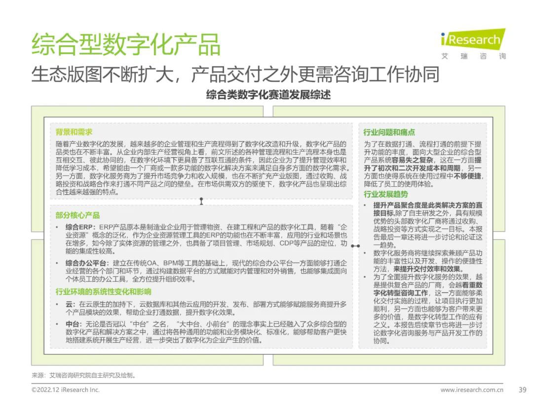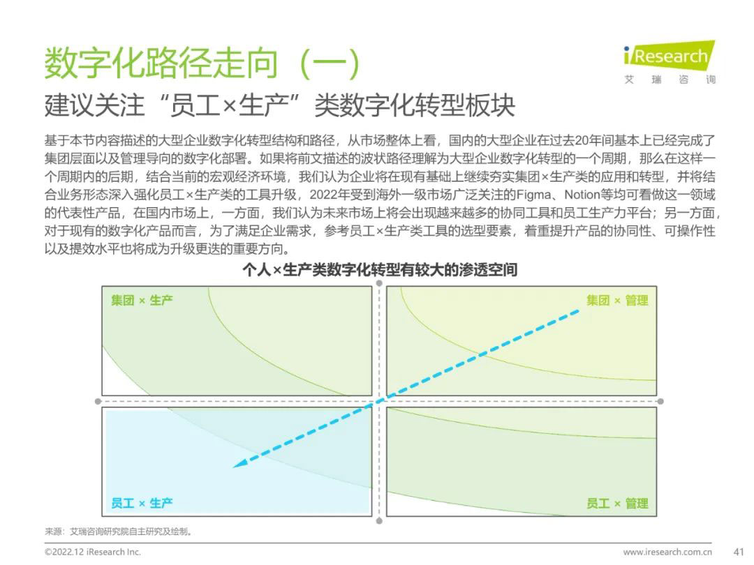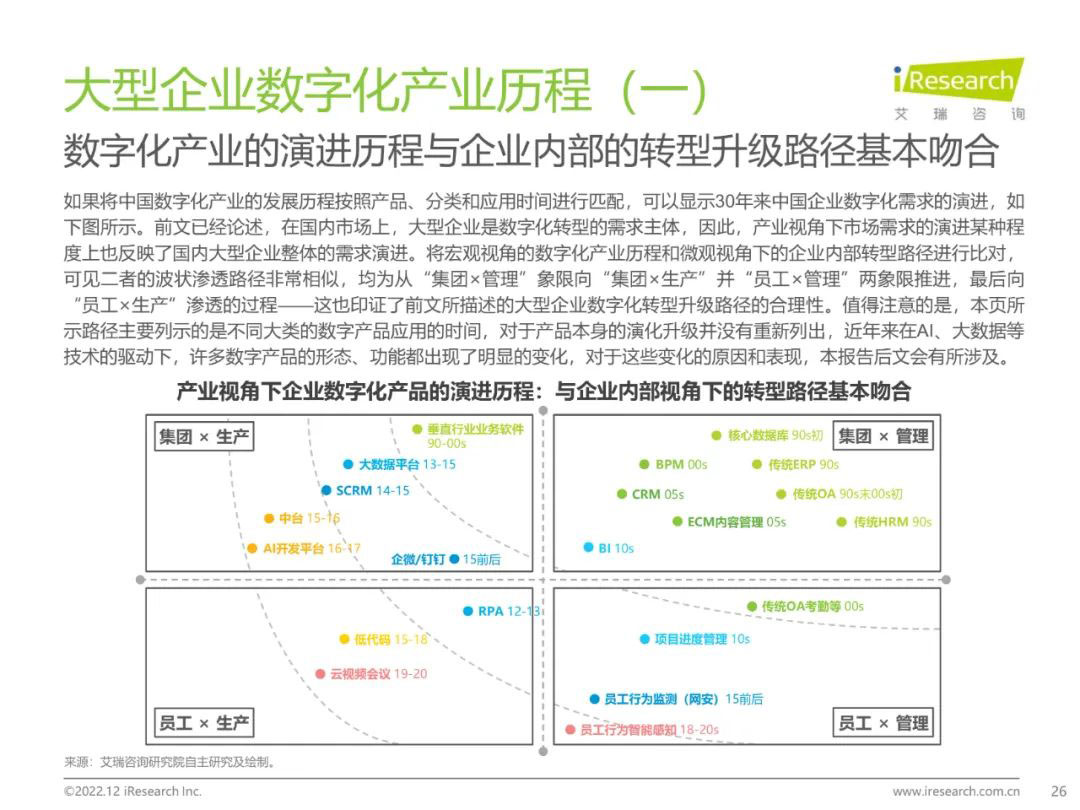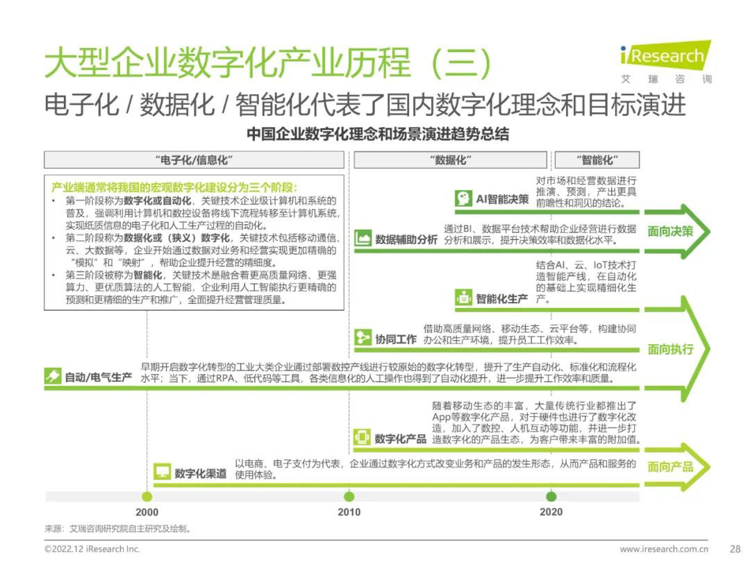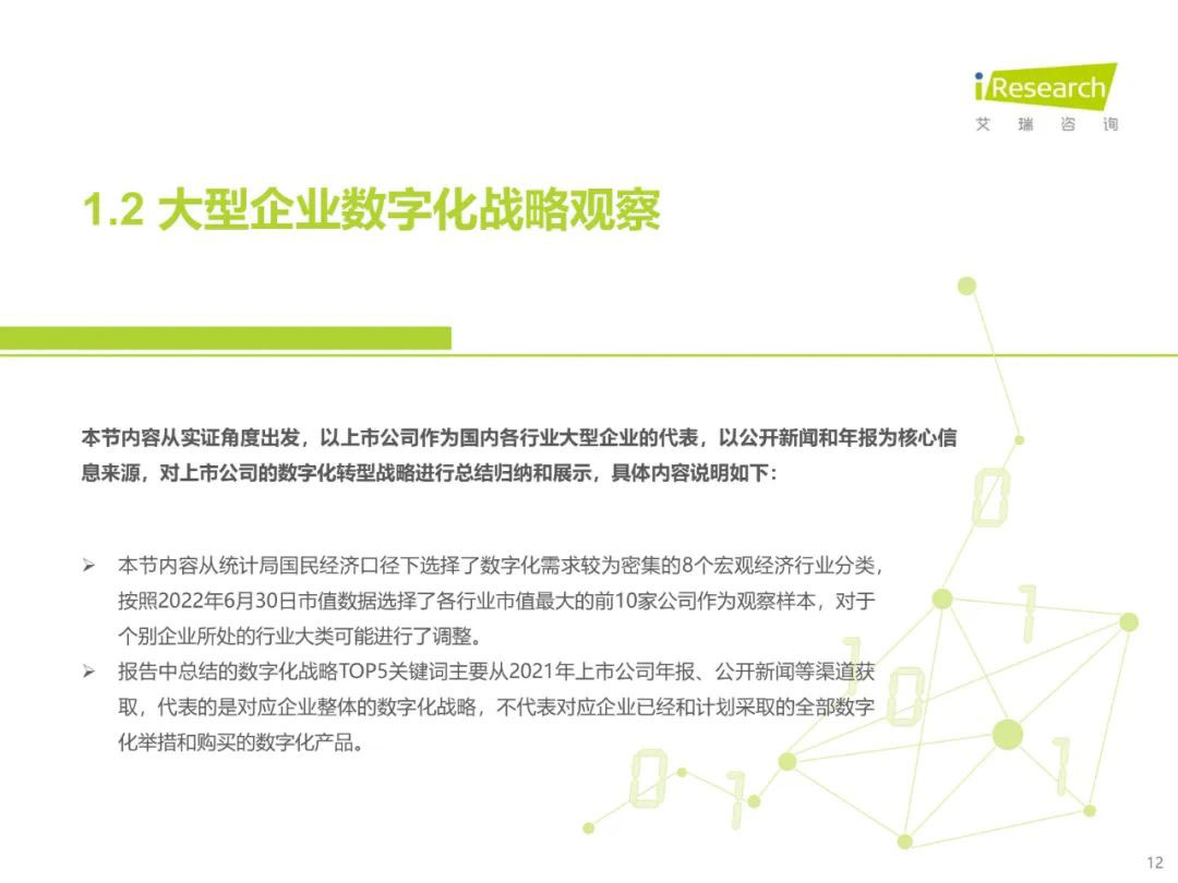 本報(bào)告研究以大型企業(yè)為客戶群的數(shù)字化市場(chǎng),是由于大型企業(yè)的數(shù)字化需求旺盛、購買力充足,因此國(guó)內(nèi)成熟的數(shù)字化服務(wù)商普遍需要以大型企業(yè)為核心客戶。大型企業(yè)與數(shù)字化服務(wù)商的供需磨合決定了我國(guó)數(shù)字化市場(chǎng)的形態(tài),造就了我國(guó)數(shù)字化市場(chǎng)與海外市場(chǎng)的差異。研究大型企業(yè)的數(shù)字化市場(chǎng)能夠展現(xiàn)我國(guó)數(shù)字化行業(yè)的發(fā)展歷史、現(xiàn)階段的發(fā)展特征,也能夠通過大型企業(yè)需求的變遷一窺數(shù)字化行業(yè)未來的發(fā)展軌跡。