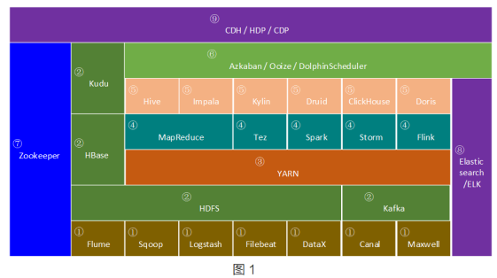 目前大數(shù)據(jù)生態(tài)圈中的核心技術總結下來如圖1所示,分為以下9類,下面分別介紹。