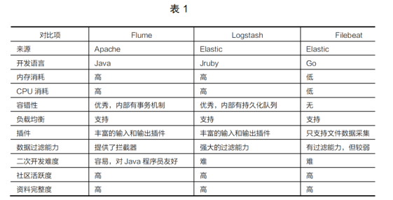 ● Flume、Logstash和FileBeat常用于日志數(shù)據(jù)實時監(jiān)控采集,它們之間的細節(jié)區(qū)別見表1: