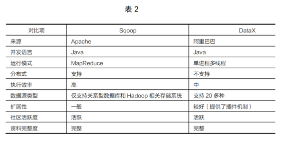 ● Sqoop和Datax常用于關系型數(shù)據(jù)庫離線數(shù)據(jù)采集,它們之間的細節(jié)區(qū)別見表2: