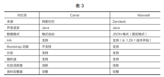 ● Cannal和Maxwell常用于關系型數(shù)據(jù)庫實時數(shù)據(jù)采集,它們之間的細節(jié)區(qū)別見表3: