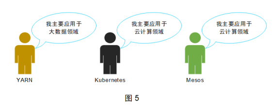 在大數(shù)據(jù)時代到來之前,服務器資源的變更對應的是系統(tǒng)的上線和下線,這些變動是有限的。隨著大數(shù)據(jù)時代的到來,臨時任務的需求量大增,這些任務往往需要大量的服務器資源。如果此時還依賴運維人員人工對接服務器資源的變更,顯然是不現(xiàn)實的。因此,分布式資源管理系統(tǒng)應運而生,常見的包括YARN、Kubernetes和Mesos,它們的典型應用領域如圖5所示。