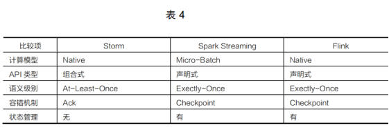 他和Storm、Flink之間的區(qū)別見表4。