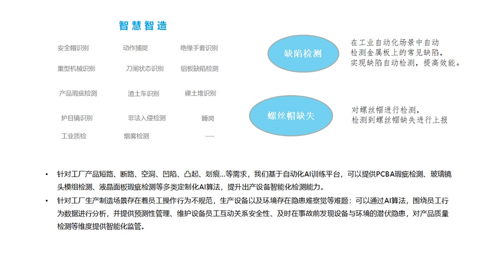 AI廣泛的應(yīng)用于各大行業(yè),但由于AI無法標(biāo)準(zhǔn)化,所以不同的場景應(yīng)用需要定制開發(fā),加之傳統(tǒng)算法的生產(chǎn)能力,這就會導(dǎo)致需要耗費大量的人力、財力和時間。 而我們的產(chǎn)品,是基于AutoML自動機器學(xué)習(xí)技術(shù),全流程自動化,無需AI科學(xué)家參與,每一種場景皆可小時級構(gòu)建對應(yīng)的算法模型。適配99%以上硬件的生態(tài)兼容,擁有靈活的業(yè)務(wù)模式,用戶可根據(jù)實際情況按需選擇合作方案